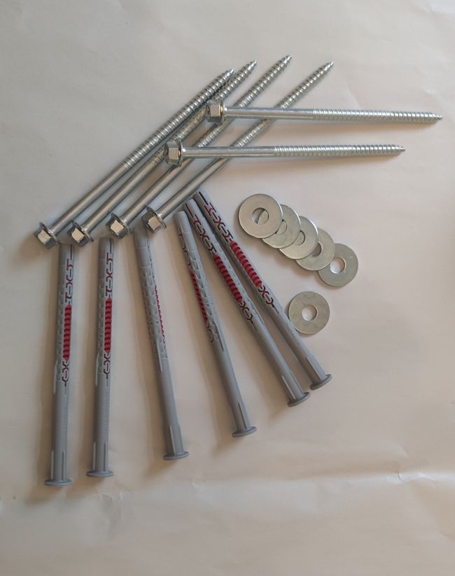 6 x Wanddübel und Schrauben ca. 13 cm und 6 x Unterlegschreiben